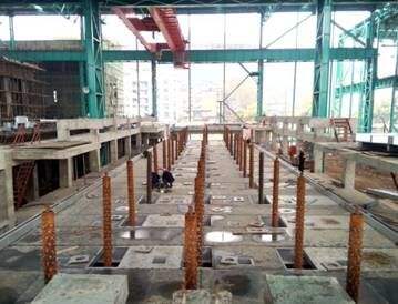 臺(tái)車(chē)式退火爐鋼 結(jié)構(gòu)主要包括爐殼支撐框架和驅(qū)動(dòng)設(shè)備支撐框架(平臺(tái)鋼結(jié)構(gòu))。考慮到爐殼潛在的熱脹冷縮因素,各段爐殼支撐框架與平臺(tái)鋼結(jié)構(gòu)采川相互獨(dú)立結(jié)構(gòu)。各爐段的底 輥室先安裝就位,以自己四角立柱為基準(zhǔn)完成4個(gè)基準(zhǔn)立柱焊接;再焊接左右兩個(gè)整體端板.而操作側(cè)和傳..